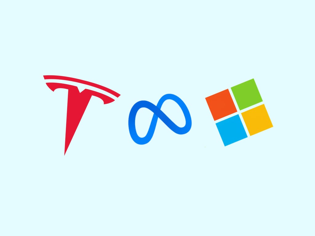 Meta verkoopt aandacht, Microsoft verkoopt rekenkracht en Tesla verkoopt hardware, hoewel de markt het bedrijf van Elon Musk steeds meer als een softwarebedrijf ziet.